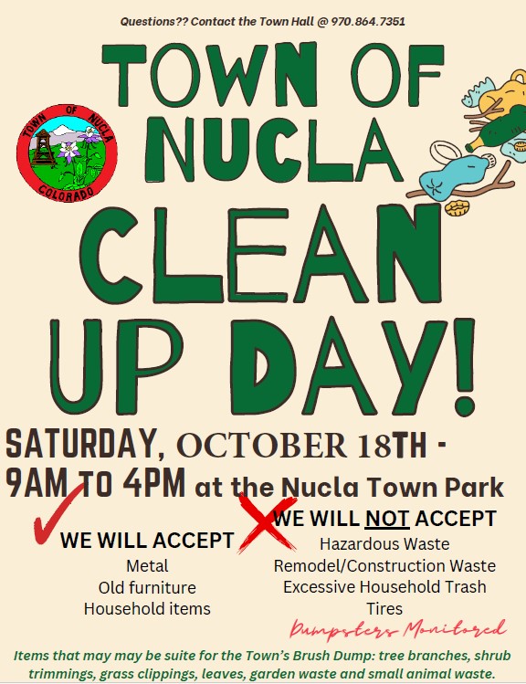 - Town of Nucla Board of Trustees Public Meeting Notice: October 9, 2025 6:00pm - None